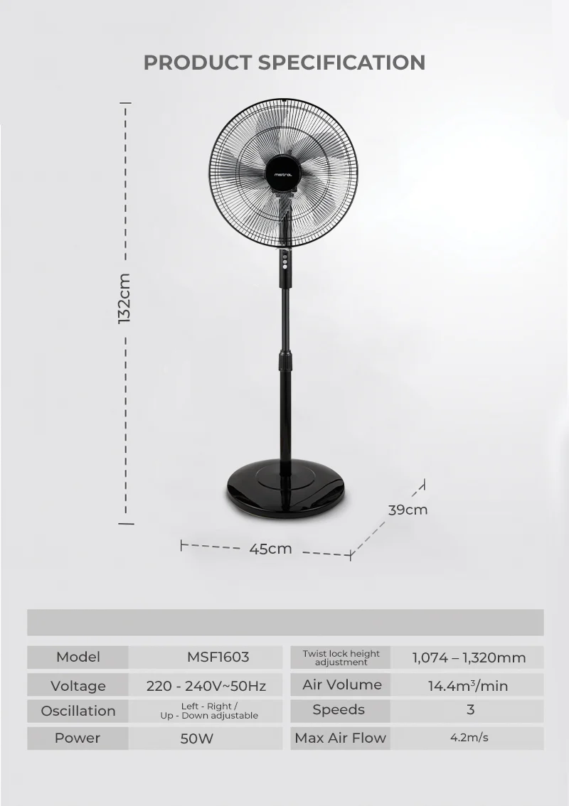 16in Height Adjustable Stand Fan MSF1603 Mistral