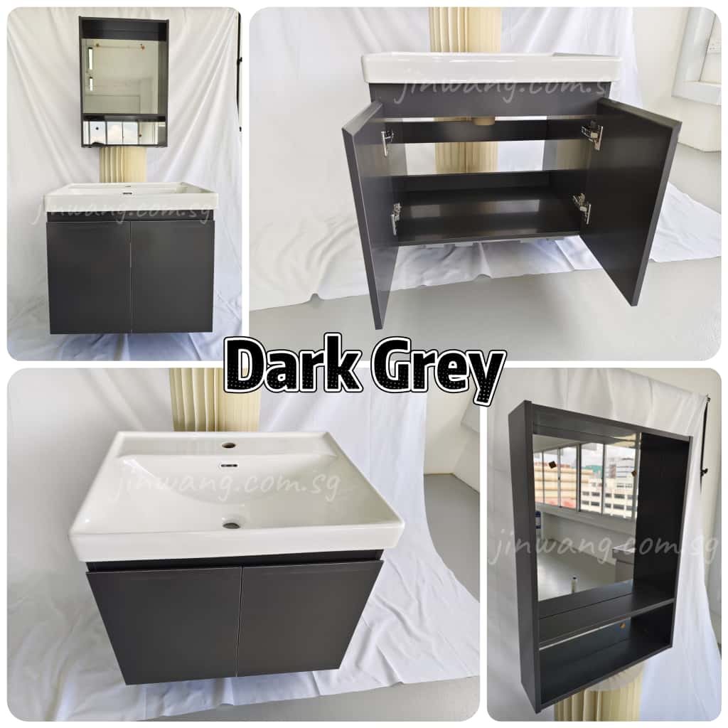 High Quality PVC Waterproof Mirror L500xW120xH700mm and Basin Cabinet Dark Grey L595xW475xH440mm JWEBC6047DG