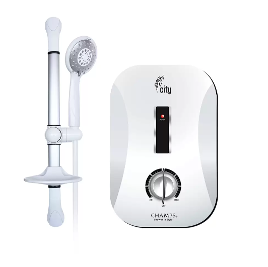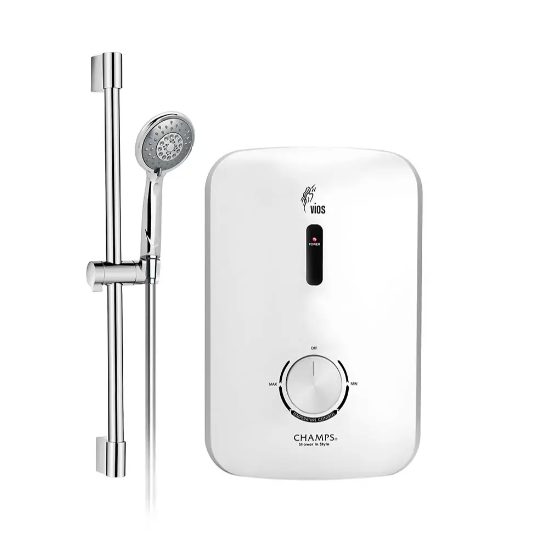 Each heater is equipped with a CHAMPS massage shower set for a complete shower experience.